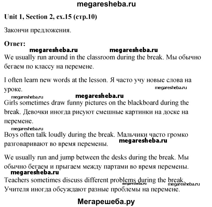 ГДЗ по английскому языку 5‐6 класс Биболетова unit 1 1-4 section - 15