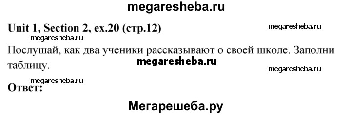 Подробный решебник (ГДЗ) по Английскому языку за 5‐6 (пятый‐шестой) класс - готовый ответ unit 1 1-4 section - 20. Авторы учебника: Биболетова, Денисенко, Трубанева. Издательство: Титул 2015.