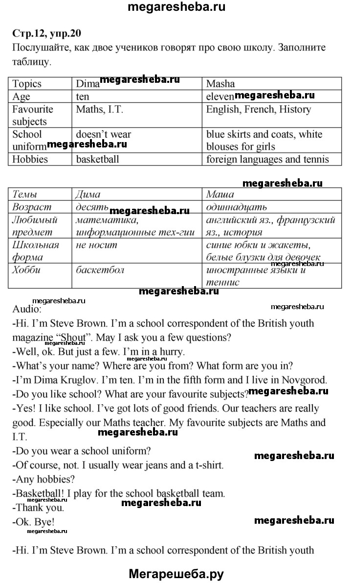 ГДЗ по английскому языку 5‐6 класс Биболетова unit 1 1-4 section - 20