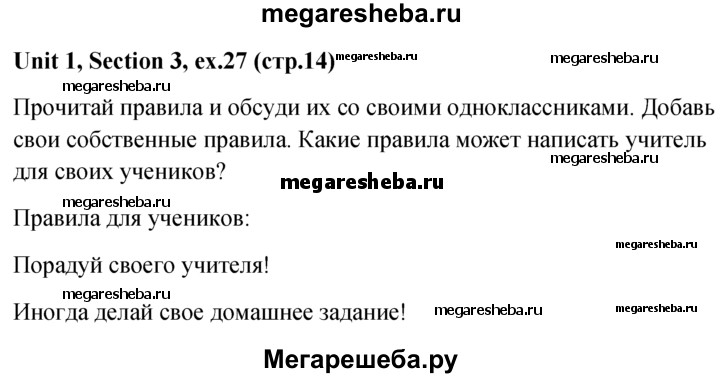 Подробный решебник (ГДЗ) по Английскому языку за 5‐6 (пятый‐шестой) класс - готовый ответ unit 1 1-4 section - 27. Авторы учебника: Биболетова, Денисенко, Трубанева. Издательство: Титул 2015.
