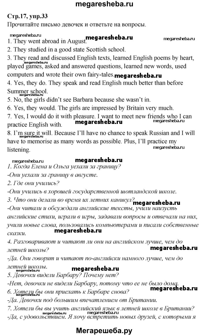 ГДЗ по английскому языку 5‐6 класс Биболетова unit 1 1-4 section - 33