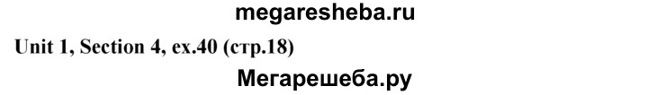 Подробный решебник (ГДЗ) по Английскому языку за 5‐6 (пятый‐шестой) класс - готовый ответ unit 1 1-4 section - 40. Авторы учебника: Биболетова, Денисенко, Трубанева. Издательство: Титул 2015.