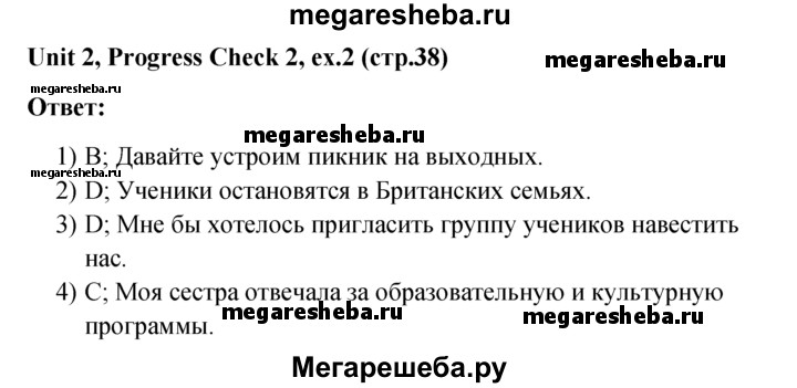 Подробный решебник (ГДЗ) по Английскому языку за 5‐6 (пятый‐шестой) класс - готовый ответ unit 2 progress check - 2. Авторы учебника: Биболетова, Денисенко, Трубанева. Издательство: Титул 2015.