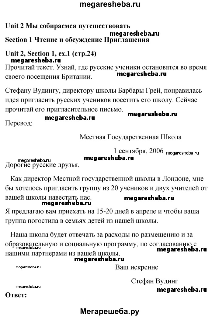 Подробный решебник (ГДЗ) по Английскому языку за 5‐6 (пятый‐шестой) класс - готовый ответ unit 2 1-3 section - 1. Авторы учебника: Биболетова, Денисенко, Трубанева. Издательство: Титул 2015.