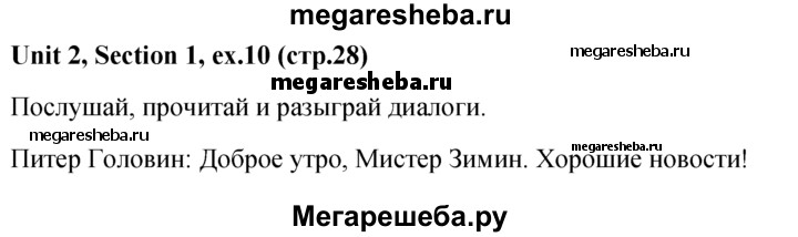 Подробный решебник (ГДЗ) по Английскому языку за 5‐6 (пятый‐шестой) класс - готовый ответ unit 2 1-3 section - 10. Авторы учебника: Биболетова, Денисенко, Трубанева. Издательство: Титул 2015.