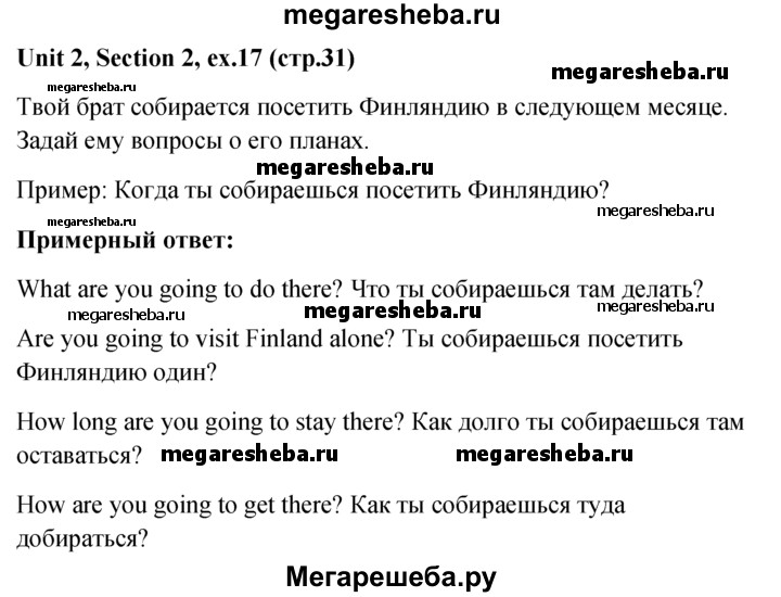 Подробный решебник (ГДЗ) по Английскому языку за 5‐6 (пятый‐шестой) класс - готовый ответ unit 2 1-3 section - 17. Авторы учебника: Биболетова, Денисенко, Трубанева. Издательство: Титул 2015.