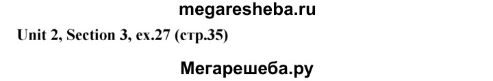 Подробный решебник (ГДЗ) по Английскому языку за 5‐6 (пятый‐шестой) класс - готовый ответ unit 2 1-3 section - 27. Авторы учебника: Биболетова, Денисенко, Трубанева. Издательство: Титул 2015.