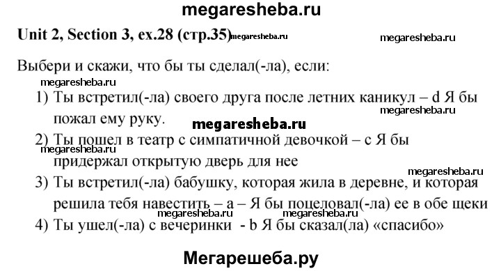 Подробный решебник (ГДЗ) по Английскому языку за 5‐6 (пятый‐шестой) класс - готовый ответ unit 2 1-3 section - 28. Авторы учебника: Биболетова, Денисенко, Трубанева. Издательство: Титул 2015.