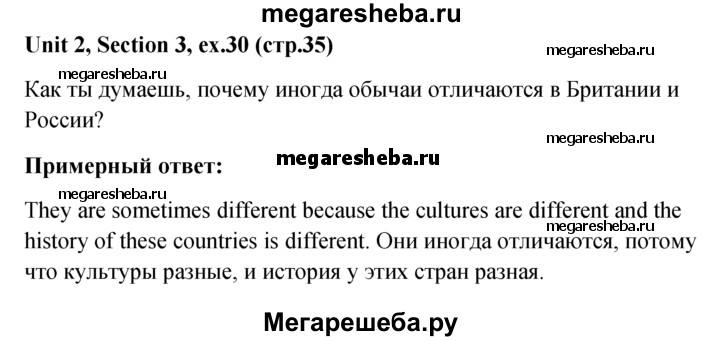 Подробный решебник (ГДЗ) по Английскому языку за 5‐6 (пятый‐шестой) класс - готовый ответ unit 2 1-3 section - 30. Авторы учебника: Биболетова, Денисенко, Трубанева. Издательство: Титул 2015.