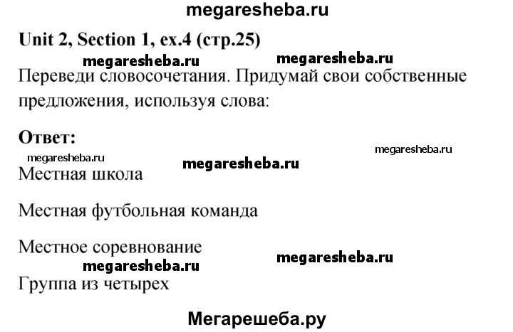Подробный решебник (ГДЗ) по Английскому языку за 5‐6 (пятый‐шестой) класс - готовый ответ unit 2 1-3 section - 4. Авторы учебника: Биболетова, Денисенко, Трубанева. Издательство: Титул 2015.