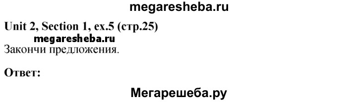 Подробный решебник (ГДЗ) по Английскому языку за 5‐6 (пятый‐шестой) класс - готовый ответ unit 2 1-3 section - 5. Авторы учебника: Биболетова, Денисенко, Трубанева. Издательство: Титул 2015.