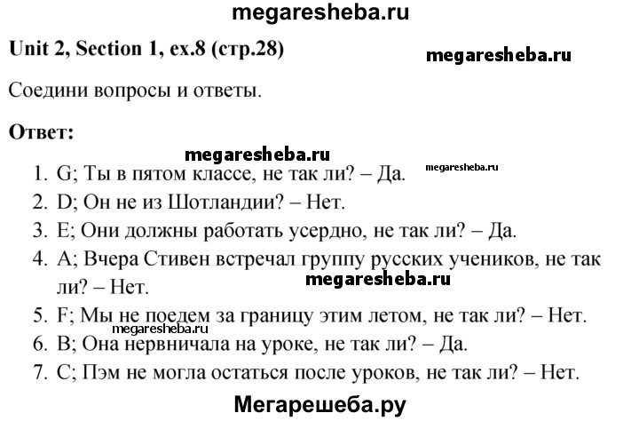 Подробный решебник (ГДЗ) по Английскому языку за 5‐6 (пятый‐шестой) класс - готовый ответ unit 2 1-3 section - 8. Авторы учебника: Биболетова, Денисенко, Трубанева. Издательство: Титул 2015.