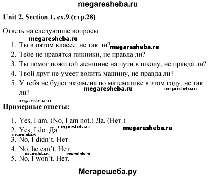 ГДЗ по английскому языку 5‐6 класс Биболетова unit 2 1-3 section - 9