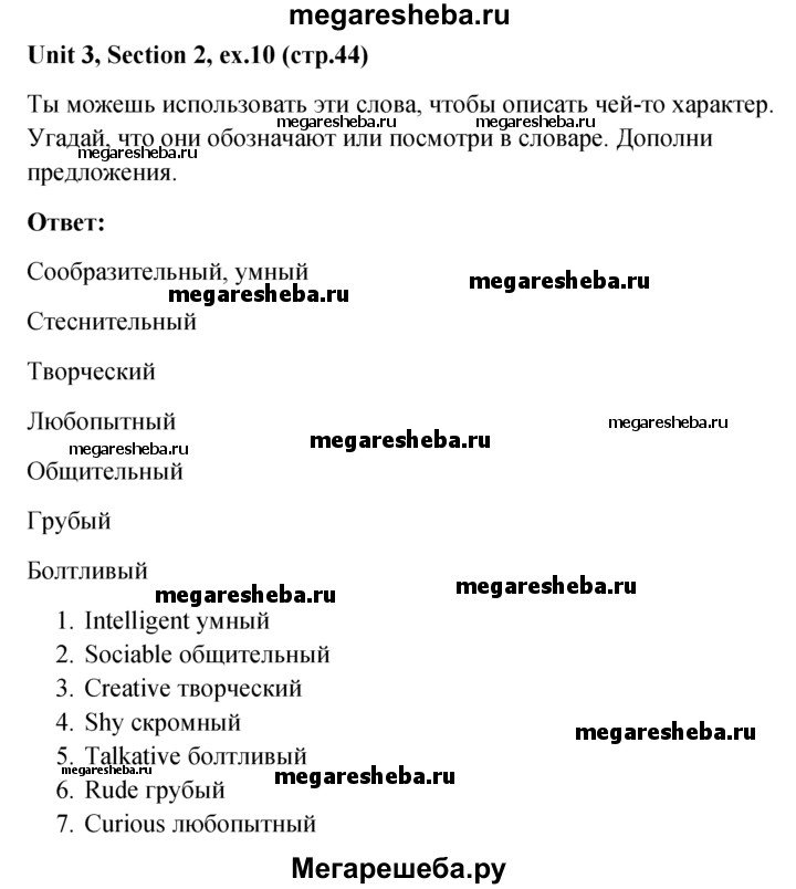 Подробный решебник (ГДЗ) по Английскому языку за 5‐6 (пятый‐шестой) класс - готовый ответ unit 3 1-3 section - 10. Авторы учебника: Биболетова, Денисенко, Трубанева. Издательство: Титул 2015.