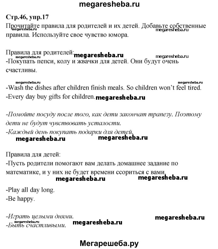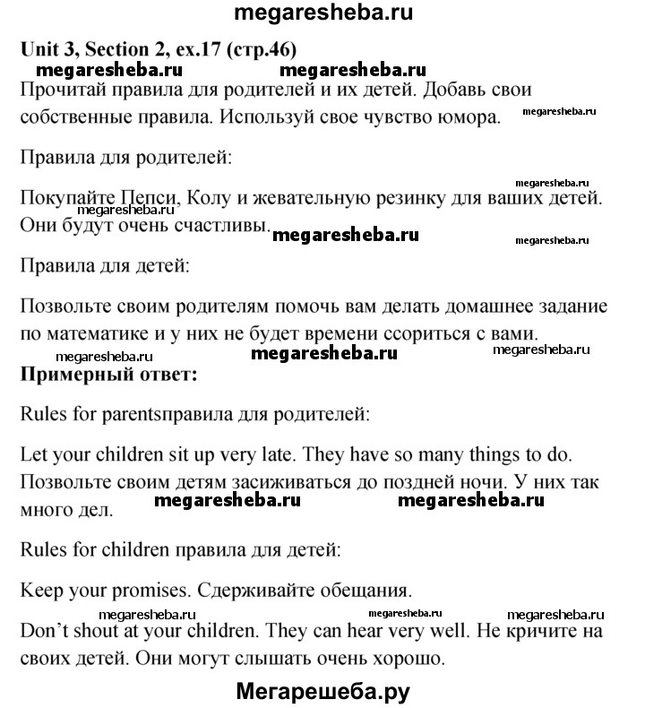 Подробный решебник (ГДЗ) по Английскому языку за 5‐6 (пятый‐шестой) класс - готовый ответ unit 3 1-3 section - 17. Авторы учебника: Биболетова, Денисенко, Трубанева. Издательство: Титул 2015.