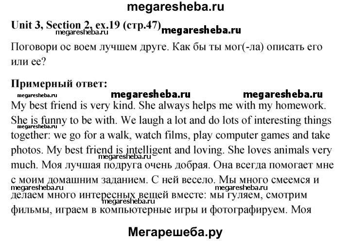 Подробный решебник (ГДЗ) по Английскому языку за 5‐6 (пятый‐шестой) класс - готовый ответ unit 3 1-3 section - 19. Авторы учебника: Биболетова, Денисенко, Трубанева. Издательство: Титул 2015.