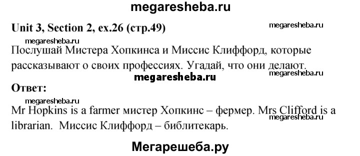 Подробный решебник (ГДЗ) по Английскому языку за 5‐6 (пятый‐шестой) класс - готовый ответ unit 3 1-3 section - 26. Авторы учебника: Биболетова, Денисенко, Трубанева. Издательство: Титул 2015.