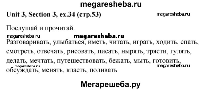 Подробный решебник (ГДЗ) по Английскому языку за 5‐6 (пятый‐шестой) класс - готовый ответ unit 3 1-3 section - 34. Авторы учебника: Биболетова, Денисенко, Трубанева. Издательство: Титул 2015.