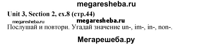 Подробный решебник (ГДЗ) по Английскому языку за 5‐6 (пятый‐шестой) класс - готовый ответ unit 3 1-3 section - 8. Авторы учебника: Биболетова, Денисенко, Трубанева. Издательство: Титул 2015.