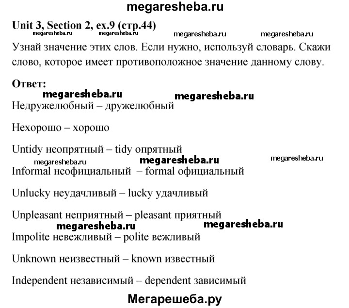 Подробный решебник (ГДЗ) по Английскому языку за 5‐6 (пятый‐шестой) класс - готовый ответ unit 3 1-3 section - 9. Авторы учебника: Биболетова, Денисенко, Трубанева. Издательство: Титул 2015.