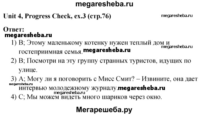 Подробный решебник (ГДЗ) по Английскому языку за 5‐6 (пятый‐шестой) класс - готовый ответ unit 4 progress check - 3. Авторы учебника: Биболетова, Денисенко, Трубанева. Издательство: Титул 2015.