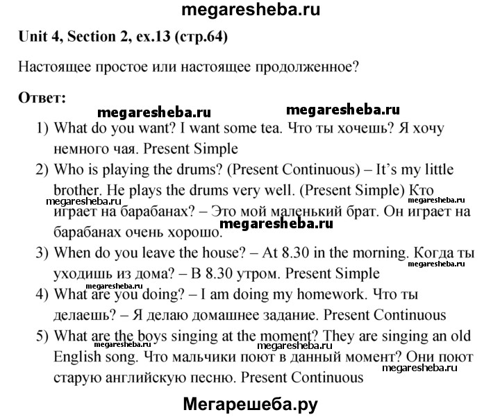 ГДЗ по английскому языку 5‐6 класс Биболетова unit 4 1-4 section - 13