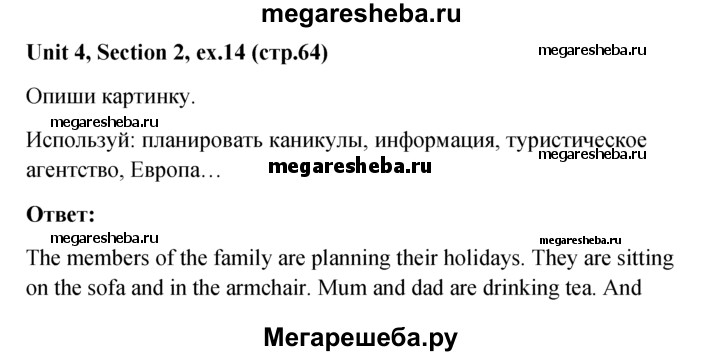 Подробный решебник (ГДЗ) по Английскому языку за 5‐6 (пятый‐шестой) класс - готовый ответ unit 4 1-4 section - 14. Авторы учебника: Биболетова, Денисенко, Трубанева. Издательство: Титул 2015.