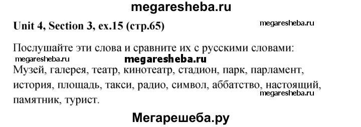 Подробный решебник (ГДЗ) по Английскому языку за 5‐6 (пятый‐шестой) класс - готовый ответ unit 4 1-4 section - 15. Авторы учебника: Биболетова, Денисенко, Трубанева. Издательство: Титул 2015.