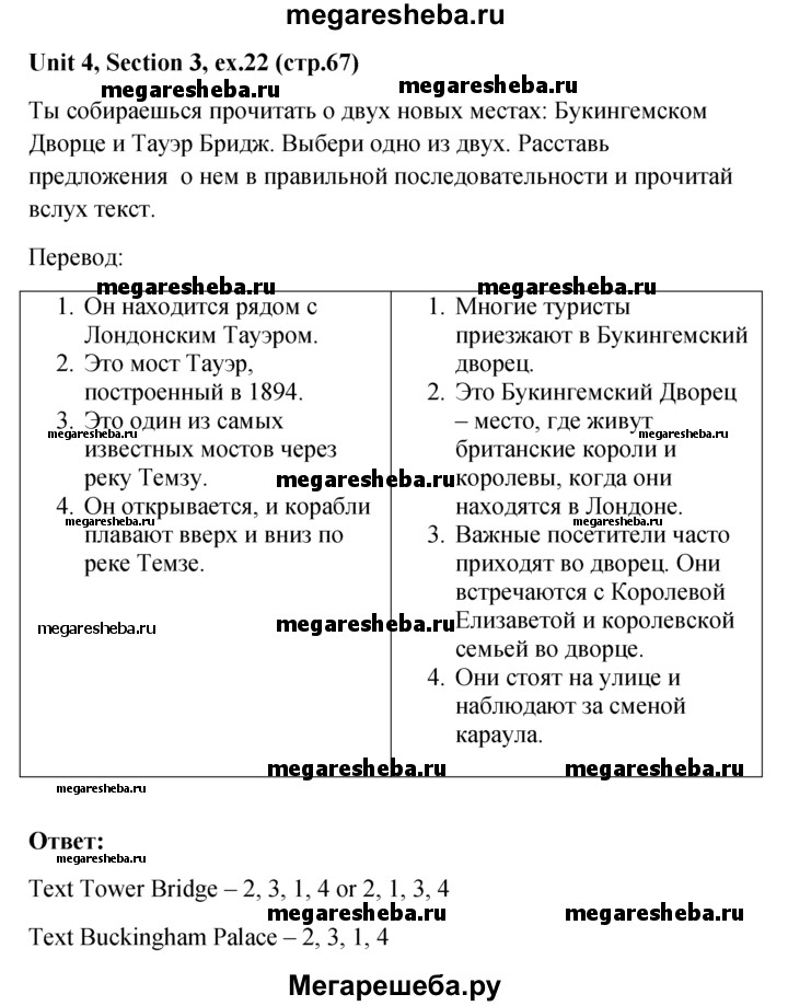 Подробный решебник (ГДЗ) по Английскому языку за 5‐6 (пятый‐шестой) класс - готовый ответ unit 4 1-4 section - 22. Авторы учебника: Биболетова, Денисенко, Трубанева. Издательство: Титул 2015.