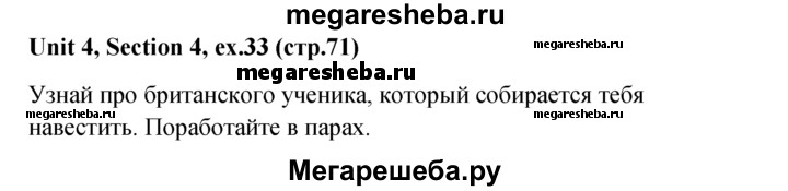 Подробный решебник (ГДЗ) по Английскому языку за 5‐6 (пятый‐шестой) класс - готовый ответ unit 4 1-4 section - 33. Авторы учебника: Биболетова, Денисенко, Трубанева. Издательство: Титул 2015.