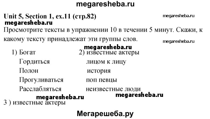 Подробный решебник (ГДЗ) по Английскому языку за 5‐6 (пятый‐шестой) класс - готовый ответ unit 5 1-3 section - 11. Авторы учебника: Биболетова, Денисенко, Трубанева. Издательство: Титул 2015.