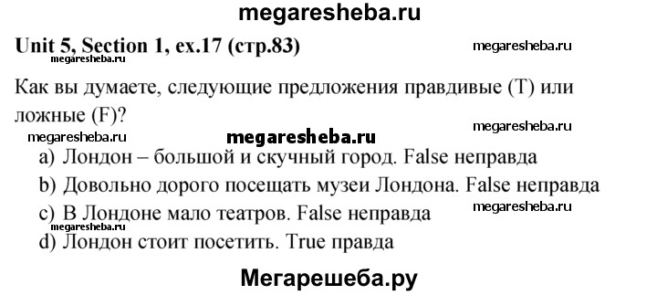 Подробный решебник (ГДЗ) по Английскому языку за 5‐6 (пятый‐шестой) класс - готовый ответ unit 5 1-3 section - 17. Авторы учебника: Биболетова, Денисенко, Трубанева. Издательство: Титул 2015.