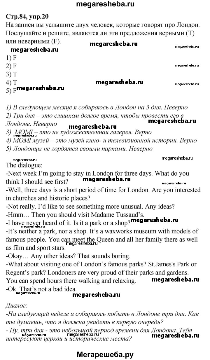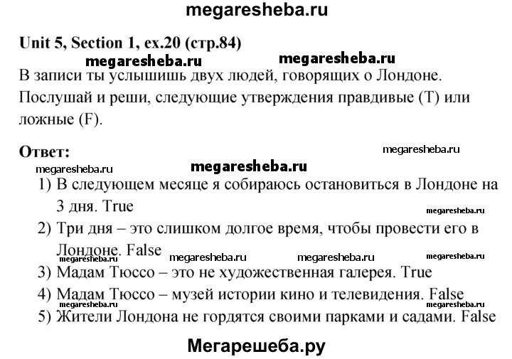Подробный решебник (ГДЗ) по Английскому языку за 5‐6 (пятый‐шестой) класс - готовый ответ unit 5 1-3 section - 20. Авторы учебника: Биболетова, Денисенко, Трубанева. Издательство: Титул 2015.