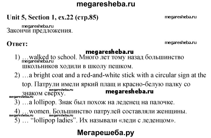 Подробный решебник (ГДЗ) по Английскому языку за 5‐6 (пятый‐шестой) класс - готовый ответ unit 5 1-3 section - 22. Авторы учебника: Биболетова, Денисенко, Трубанева. Издательство: Титул 2015.