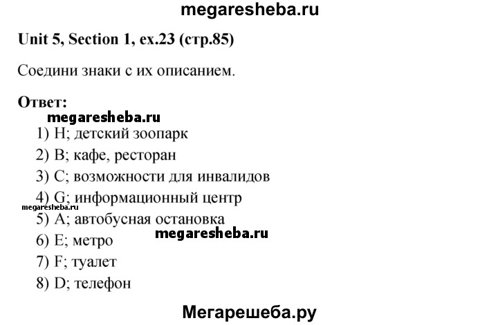 Подробный решебник (ГДЗ) по Английскому языку за 5‐6 (пятый‐шестой) класс - готовый ответ unit 5 1-3 section - 23. Авторы учебника: Биболетова, Денисенко, Трубанева. Издательство: Титул 2015.