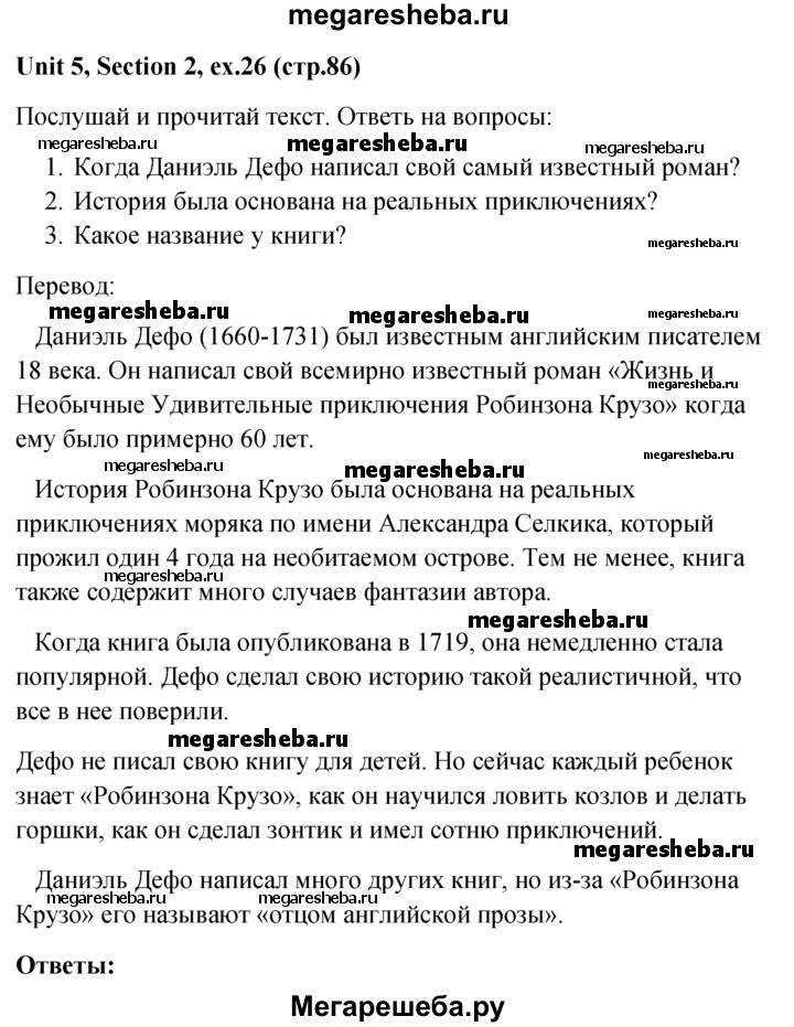 Подробный решебник (ГДЗ) по Английскому языку за 5‐6 (пятый‐шестой) класс - готовый ответ unit 5 1-3 section - 26. Авторы учебника: Биболетова, Денисенко, Трубанева. Издательство: Титул 2015.