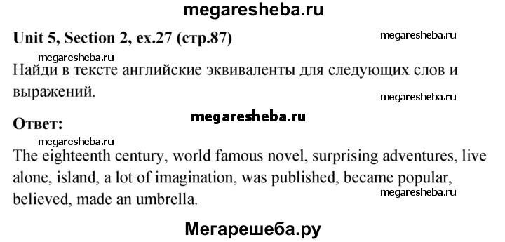 Подробный решебник (ГДЗ) по Английскому языку за 5‐6 (пятый‐шестой) класс - готовый ответ unit 5 1-3 section - 27. Авторы учебника: Биболетова, Денисенко, Трубанева. Издательство: Титул 2015.