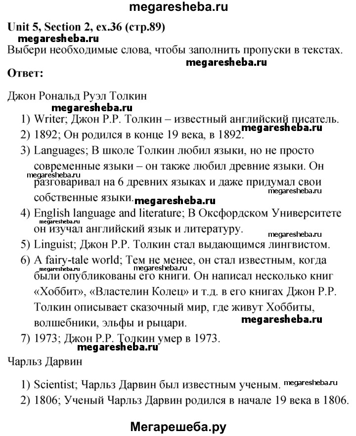 ГДЗ по английскому языку 5‐6 класс Биболетова unit 5 1-3 section - 36