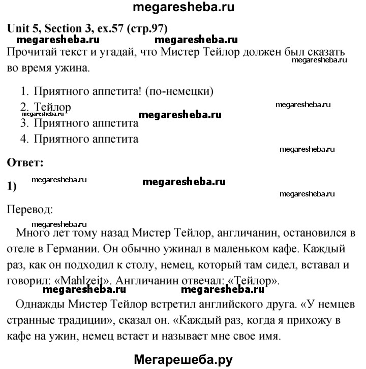 Подробный решебник (ГДЗ) по Английскому языку за 5‐6 (пятый‐шестой) класс - готовый ответ unit 5 1-3 section - 57. Авторы учебника: Биболетова, Денисенко, Трубанева. Издательство: Титул 2015.