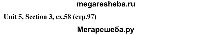 Подробный решебник (ГДЗ) по Английскому языку за 5‐6 (пятый‐шестой) класс - готовый ответ unit 5 1-3 section - 58. Авторы учебника: Биболетова, Денисенко, Трубанева. Издательство: Титул 2015.