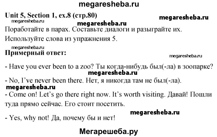 Подробный решебник (ГДЗ) по Английскому языку за 5‐6 (пятый‐шестой) класс - готовый ответ unit 5 1-3 section - 8. Авторы учебника: Биболетова, Денисенко, Трубанева. Издательство: Титул 2015.