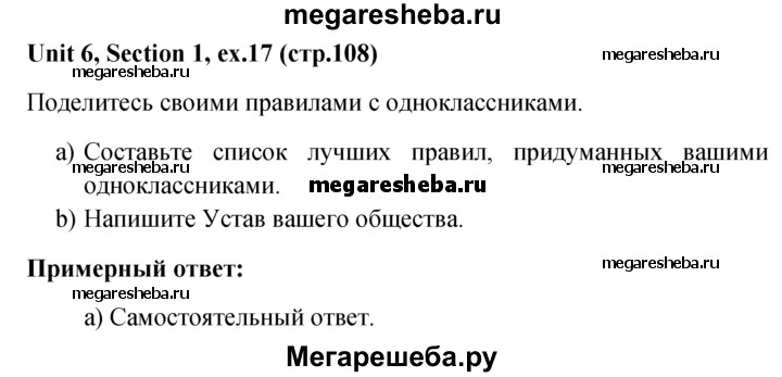 Подробный решебник (ГДЗ) по Английскому языку за 5‐6 (пятый‐шестой) класс - готовый ответ unit 6 1-4 section - 17. Авторы учебника: Биболетова, Денисенко, Трубанева. Издательство: Титул 2015.