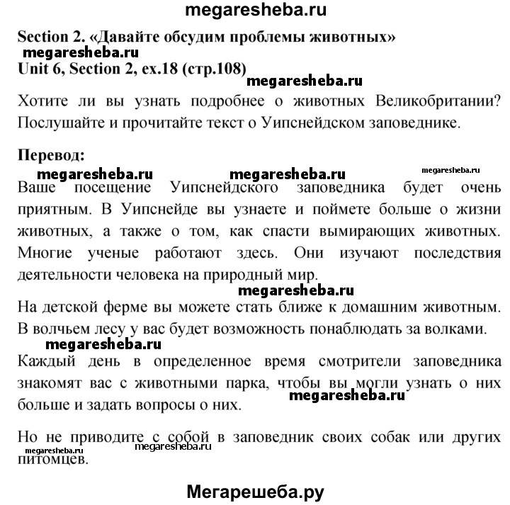 Подробный решебник (ГДЗ) по Английскому языку за 5‐6 (пятый‐шестой) класс - готовый ответ unit 6 1-4 section - 18. Авторы учебника: Биболетова, Денисенко, Трубанева. Издательство: Титул 2015.