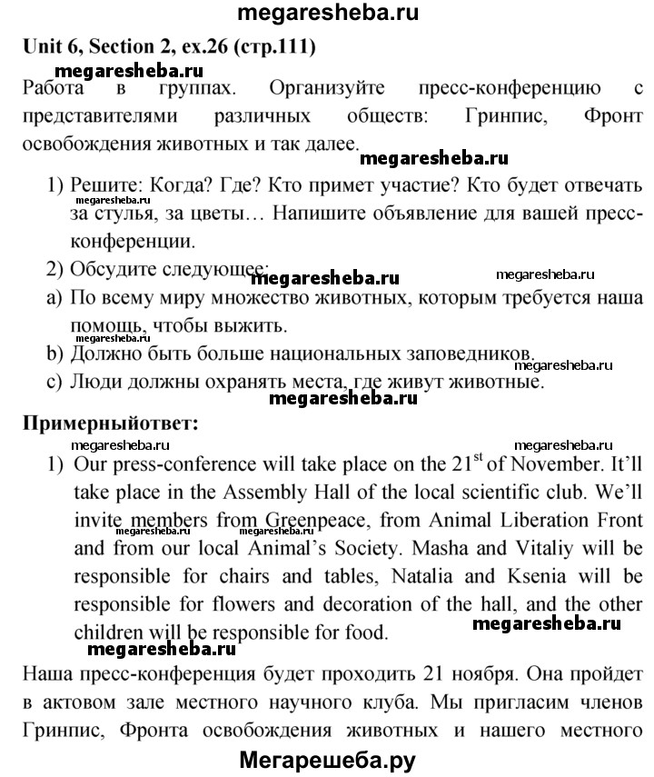 Подробный решебник (ГДЗ) по Английскому языку за 5‐6 (пятый‐шестой) класс - готовый ответ unit 6 1-4 section - 26. Авторы учебника: Биболетова, Денисенко, Трубанева. Издательство: Титул 2015.