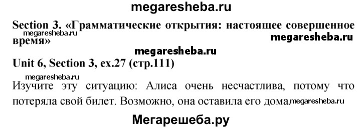 Подробный решебник (ГДЗ) по Английскому языку за 5‐6 (пятый‐шестой) класс - готовый ответ unit 6 1-4 section - 27. Авторы учебника: Биболетова, Денисенко, Трубанева. Издательство: Титул 2015.