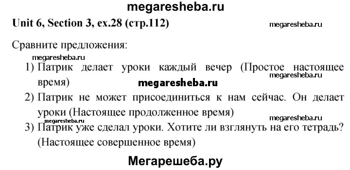 Подробный решебник (ГДЗ) по Английскому языку за 5‐6 (пятый‐шестой) класс - готовый ответ unit 6 1-4 section - 28. Авторы учебника: Биболетова, Денисенко, Трубанева. Издательство: Титул 2015.