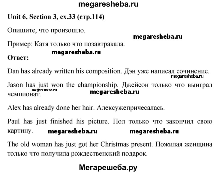 Подробный решебник (ГДЗ) по Английскому языку за 5‐6 (пятый‐шестой) класс - готовый ответ unit 6 1-4 section - 33. Авторы учебника: Биболетова, Денисенко, Трубанева. Издательство: Титул 2015.