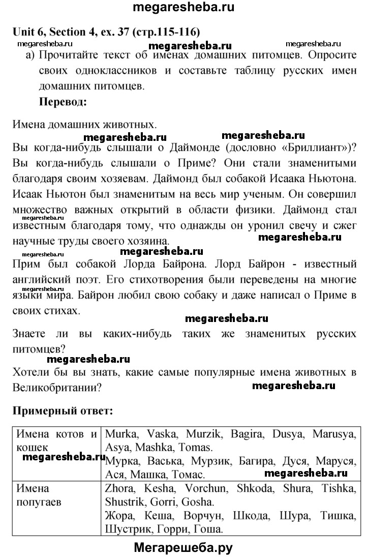 Подробный решебник (ГДЗ) по Английскому языку за 5‐6 (пятый‐шестой) класс - готовый ответ unit 6 1-4 section - 37. Авторы учебника: Биболетова, Денисенко, Трубанева. Издательство: Титул 2015.