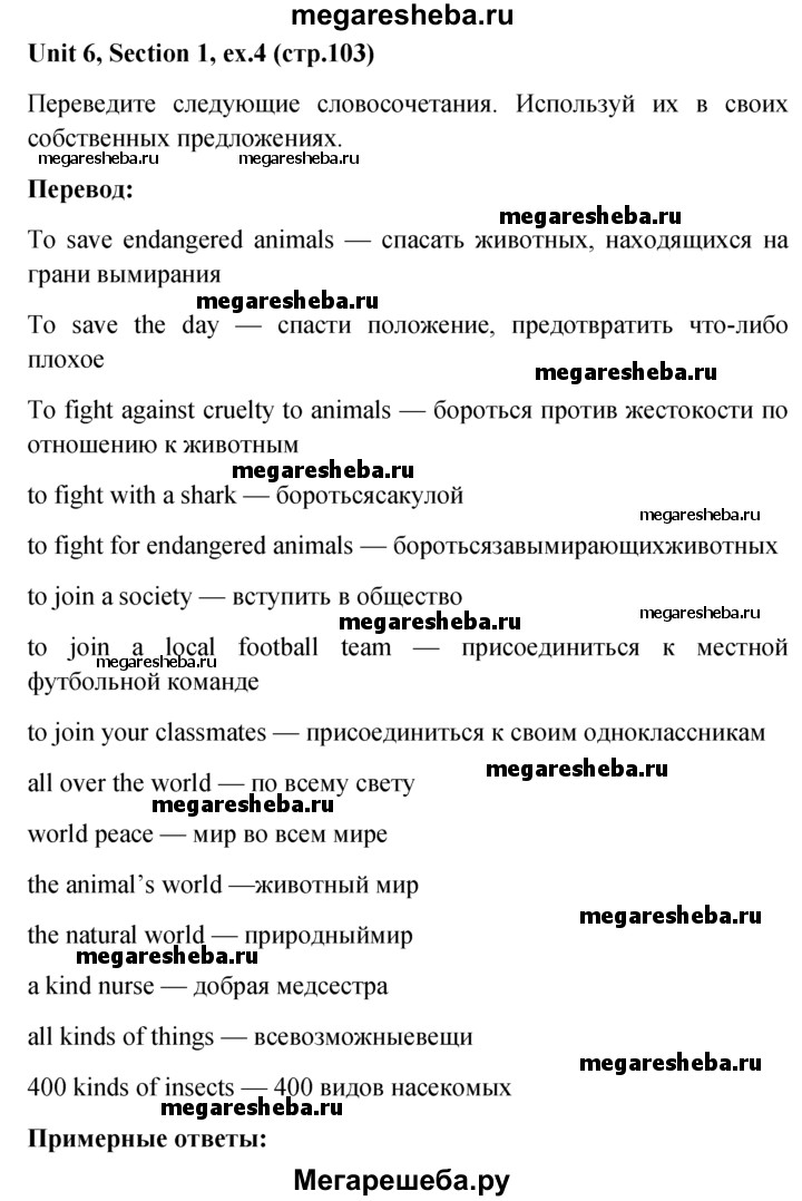 Подробный решебник (ГДЗ) по Английскому языку за 5‐6 (пятый‐шестой) класс - готовый ответ unit 6 1-4 section - 4. Авторы учебника: Биболетова, Денисенко, Трубанева. Издательство: Титул 2015.
