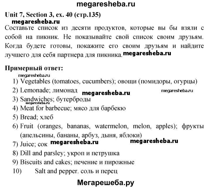 Подробный решебник (ГДЗ) по Английскому языку за 5‐6 (пятый‐шестой) класс - готовый ответ unit 7 1-4 section - 40. Авторы учебника: Биболетова, Денисенко, Трубанева. Издательство: Титул 2015.